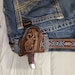 I hand tooled the front design, dyed the leather brown, and applied a clear finish to help protect the leather. The back was left natural, but also has a clear finish. This was machine sewn with dark brown nylon thread. The edges have been smoothed, dyed brown, and waxed.